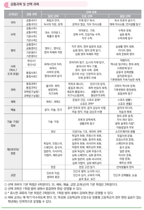 - 공통 과목 : 고등학교 1학년 때 배우는 기초 소양 과목입니다.